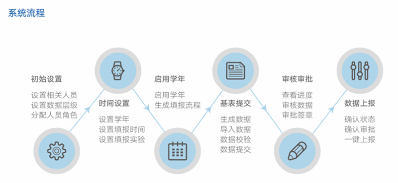 建设意义:①自动汇总基础数据及业务数据,提升数据的准确性,加快汇总工作进度。②查询分析历史数据、作为校验数据的依据。③形成教育部格式的数据文件,进行一键上报。