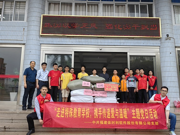 2024年5月24日,在第74个“六一”国际儿童节来临之际,为进一步弘扬中华民族扶残助残的传统美德,增进党员同志对特殊儿童教育的了解与认识,进一步激发党员同志的社会责任感和使命感,中共福建依时利软件股份有限公司支部走进泉州市特殊教育学校,开展“走进特殊教育学校,携手传递爱与温暖”主题党日活动,并捐赠了一批生活用品,为孩子们送去节日的温暖与关爱。