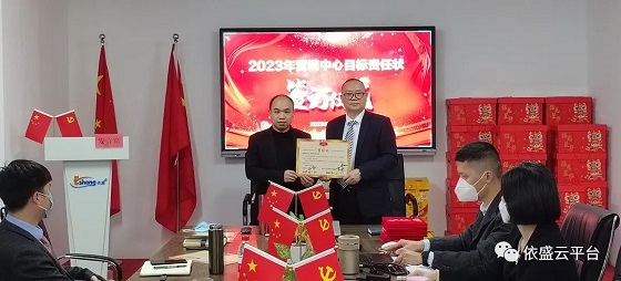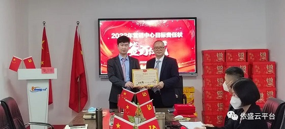 年度工作总结汇报结束后,为进一步明确2023年的经营目标,激发广大同仁的工作积极性,公司隆重举行了2023年营销中心业务目标责任状签订仪式。在签订仪式上,营销中心副总、发展部、战略部负责人分别上台接受目标挑战,并表示要将本次目标责任状变成明年的奖状,不忘初心,牢记使命,赓续传统,再创佳绩。目标责任书的签订,层层分解了公司的全年工作目标,使大家明确了2023年的工作责任,有利于发挥员工的自主管理,充分调动员工的工作积极性,把压力化为工作动力,把责任作为工作使命,为实现公司2023年的经营目标打下了坚实的基础。